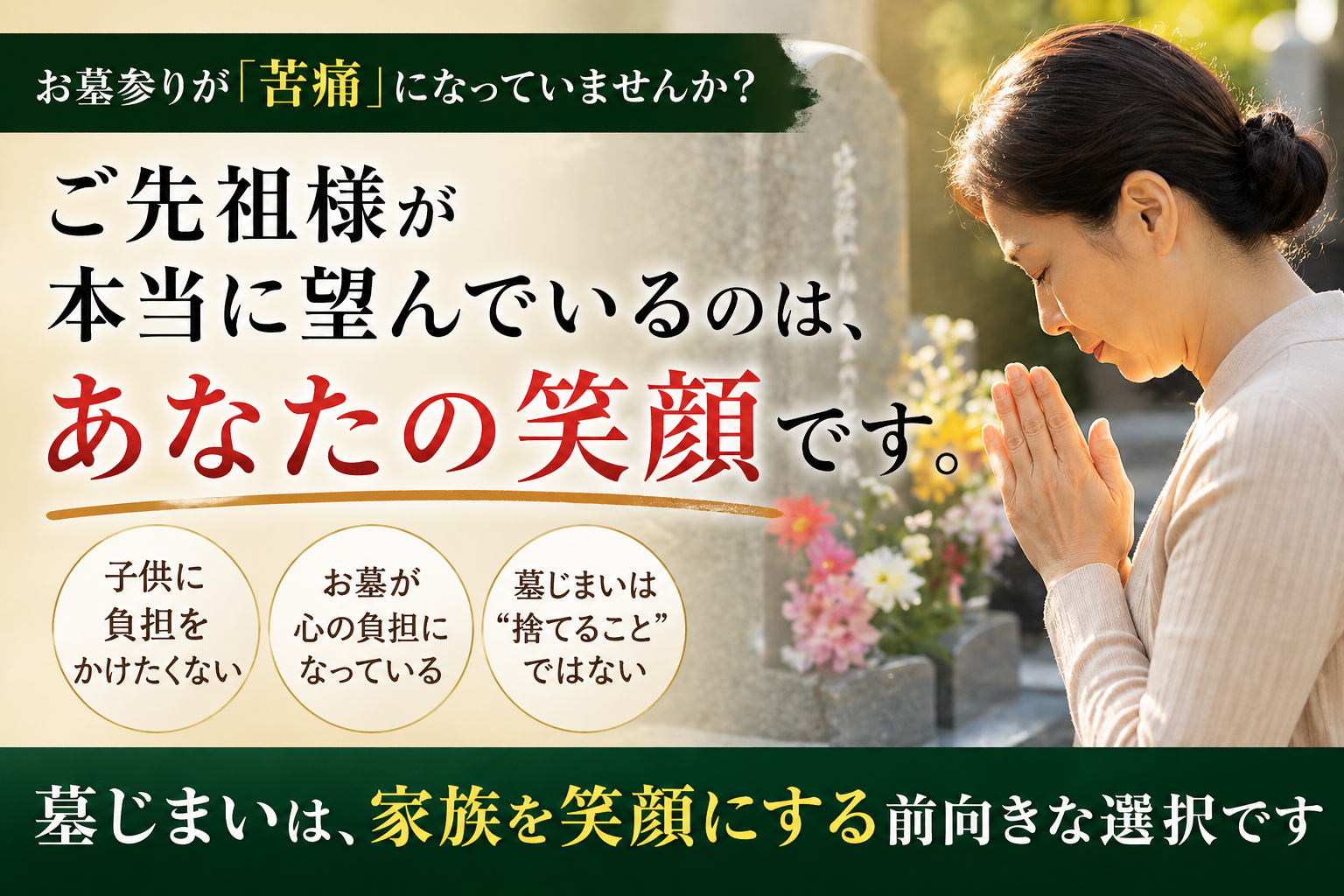 お墓のお悩みを解決することで、皆さんの日常生活がより豊かになることが私どもの願いです。